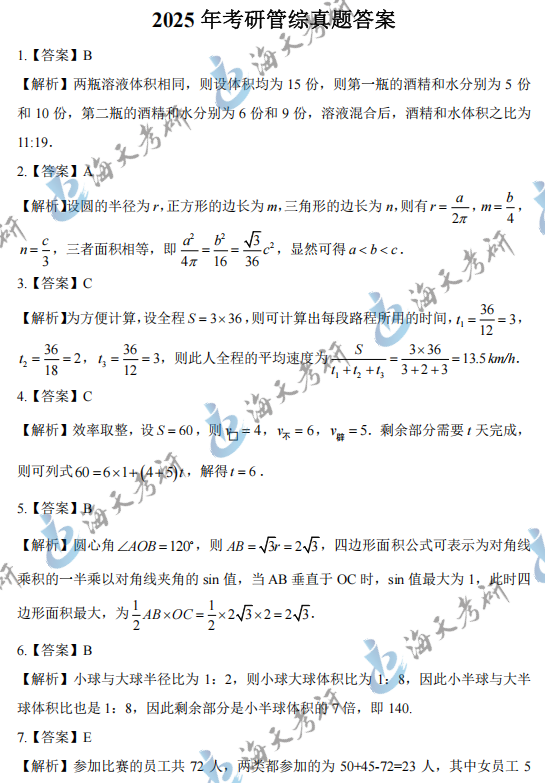 以上就是海天考研网为各位考生整理的2025考研管理类综合能力真题答案解析,持续为考研学子更新考研政治、数学、英语、396考研真题及答案解析等,各位考生可以根据自身需要关注收藏,及时查看完整版2025考研真题及答案解析。